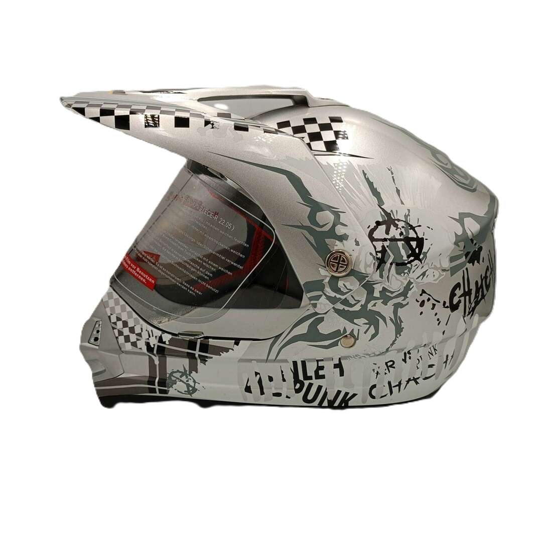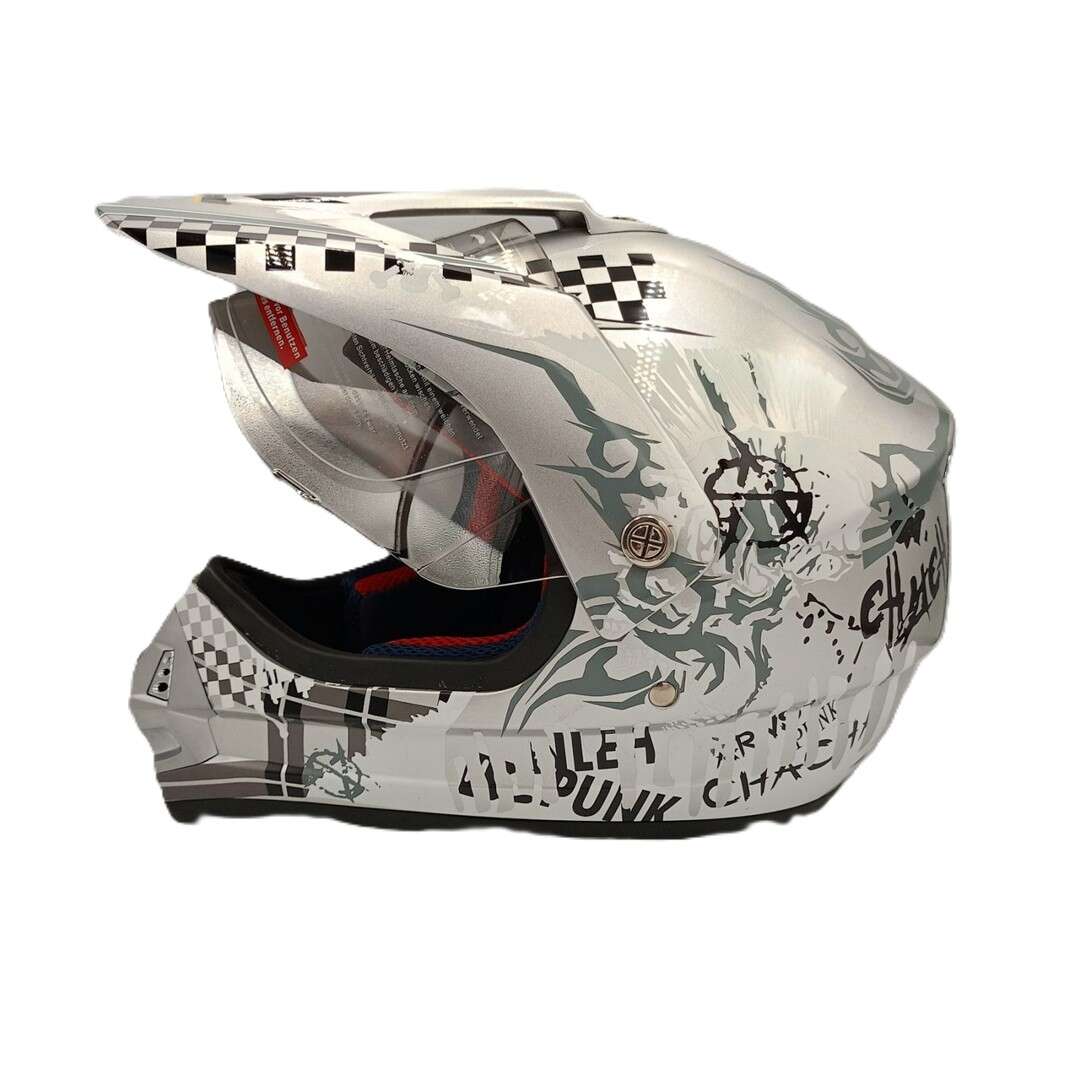 - Кросова каска Tanked с визьор крос пънк silver